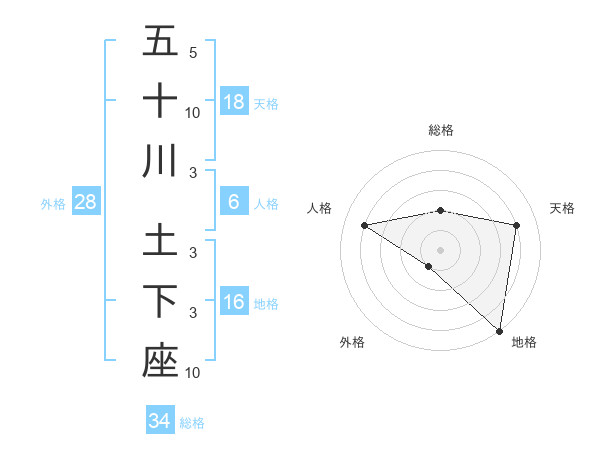 五十川 土下座さんを姓名の画数から五運を鑑定