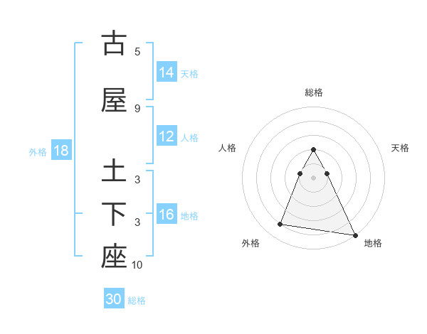 古屋 土下座さんの総格は30画の2点!