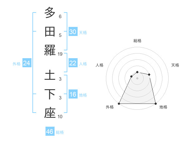 多田羅 土下座さんの外格は24画の5点!