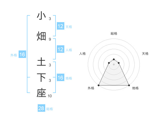 小畑 土下座さんを姓名の画数から五運を鑑定