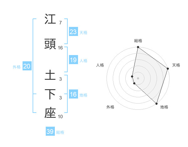 江頭 土下座さんを姓名の画数から五運を鑑定
