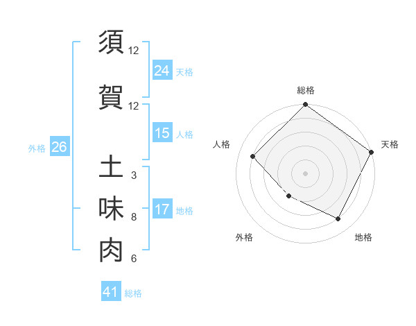 須賀 土味肉さんを姓名の画数から五運を鑑定