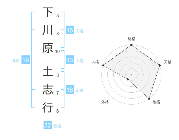 下川原 土志行さんを姓名の画数から五運を鑑定