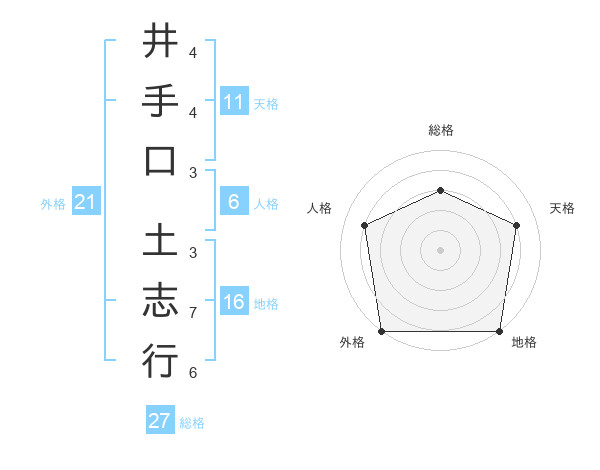 井手口 土志行さんを姓名の画数から五運を鑑定