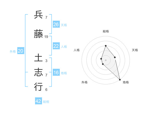 兵藤 土志行さんを姓名の画数から五運を鑑定