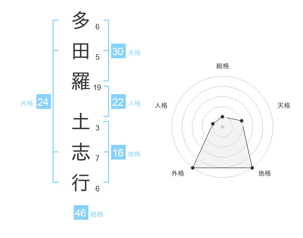 多田羅 土志行さんを姓名の画数から五運を鑑定
