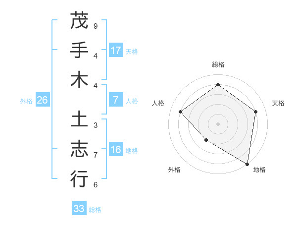 茂手木 土志行さんの天格は17画の4点!