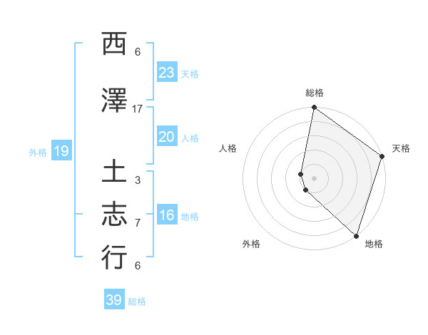 西澤 土志行さんを姓名の画数から五運を鑑定