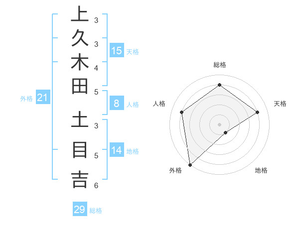 上久木田 土目吉さんの総格は29画の4点