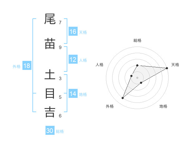尾苗 土目吉さんの天格は16画の5点!