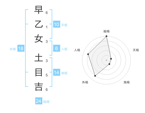 早乙女 土目吉さんを姓名の画数から五運を鑑定