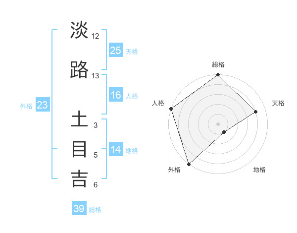 淡路 土目吉さんを姓名の画数から五運を鑑定