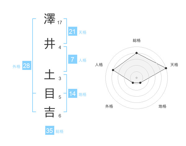 澤井 土目吉さんを姓名の画数から五運を鑑定