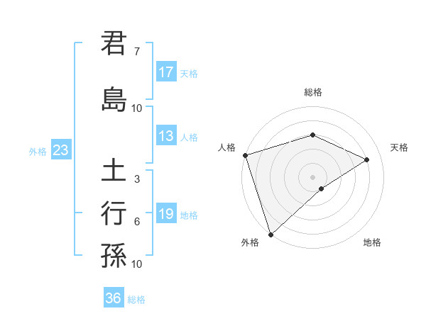 君島 土行孫さんを姓名の画数から五運を鑑定