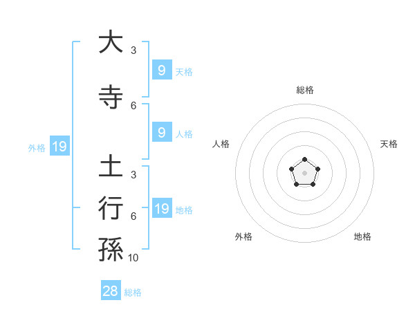 大寺 土行孫さんを姓名の画数から五運を鑑定