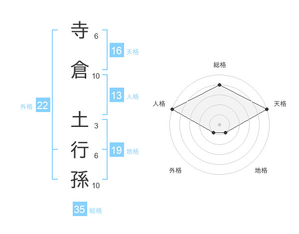 寺倉 土行孫さんの総格は35画の4点!
