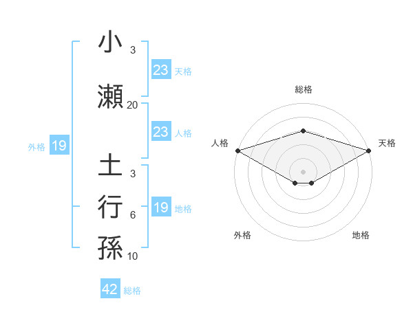 小瀬 土行孫さんの総格は42画の3点!