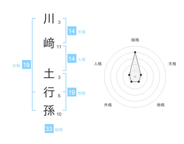 川﨑 土行孫さんを姓名の画数から五運を鑑定
