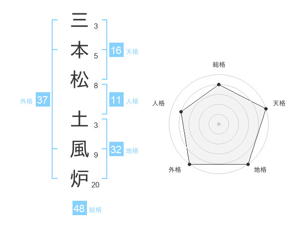 三本松 土風炉さんを姓名の画数から五運を鑑定