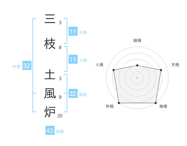 三枝 土風炉さんを姓名の画数から五運を鑑定