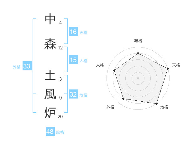 中森 土風炉さんの総格は48画の4点!