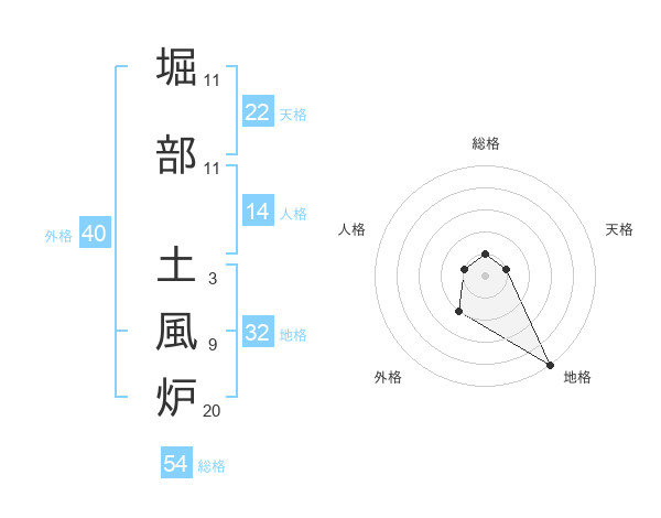 堀部 土風炉さんを姓名の画数から五運を鑑定