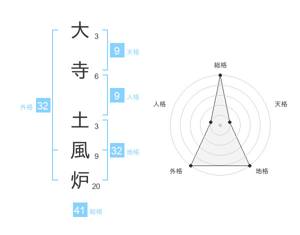大寺 土風炉さんを姓名の画数から五運を鑑定