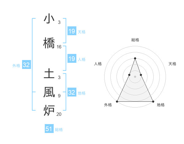 小橋 土風炉さんを姓名の画数から五運を鑑定
