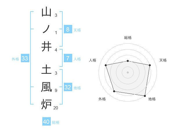 山ノ井 土風炉さんを姓名の画数から五運を鑑定