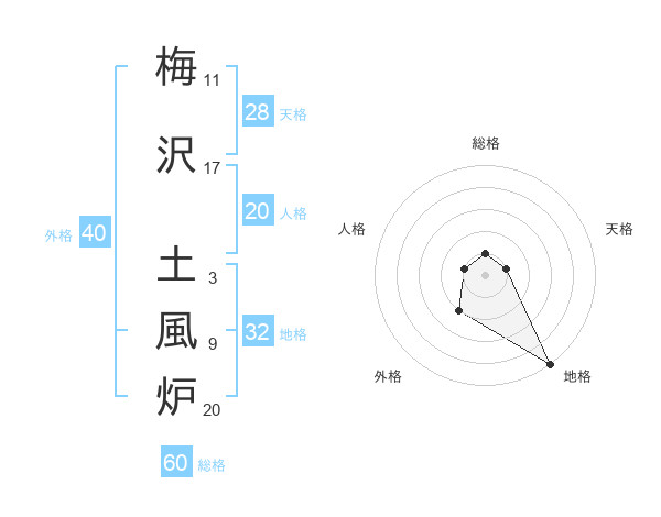 梅沢 土風炉さんの総格は60画の1点!