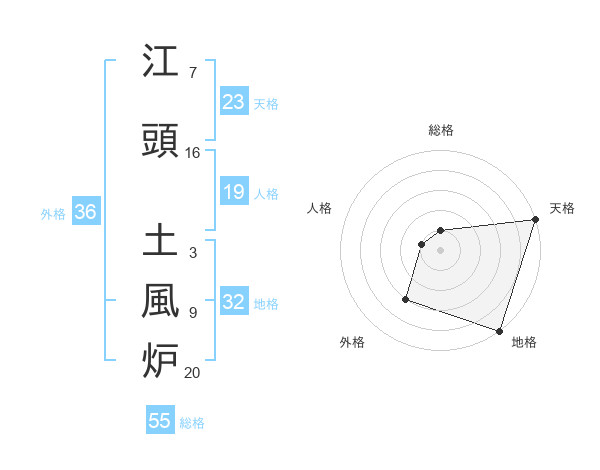 江頭 土風炉さんを姓名の画数から五運を鑑定