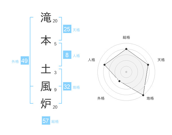 滝本 土風炉さんを姓名の画数から五運を鑑定