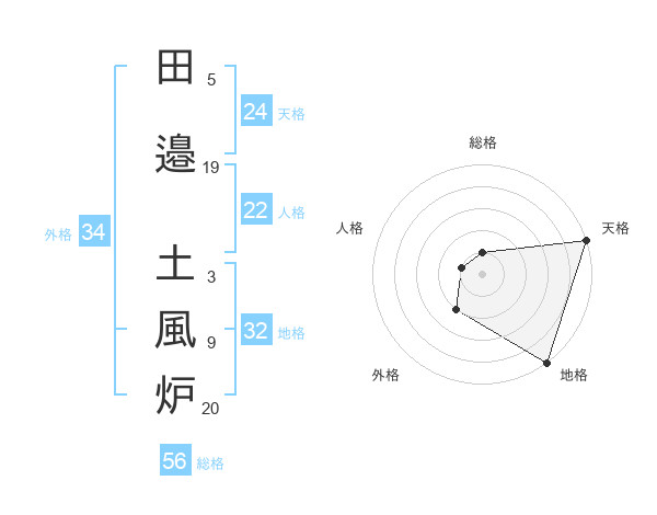 田邉 土風炉さんを姓名の画数から五運を鑑定