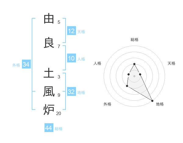 由良 土風炉さんを姓名の画数から五運を鑑定