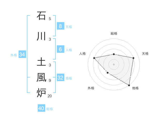 石川 土風炉さんを姓名の画数から五運を鑑定