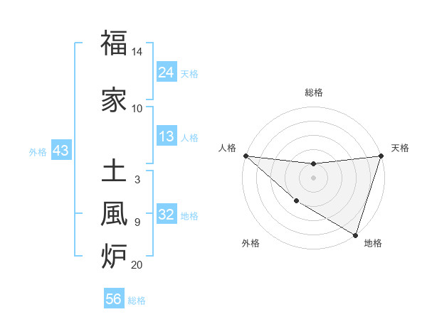 福家 土風炉さんを姓名の画数から五運を鑑定