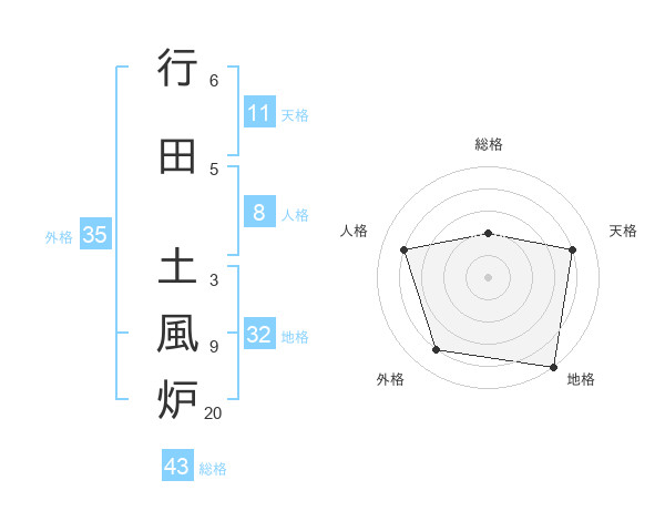 行田 土風炉さんを姓名の画数から五運を鑑定