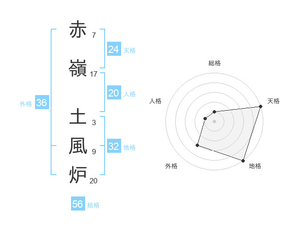 赤嶺 土風炉さんの総格は56画の1点!
