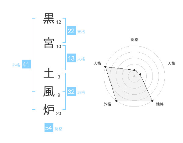 黒宮 土風炉さんを姓名の画数から五運を鑑定