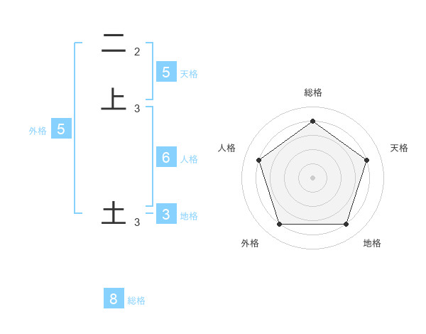 二上 土さんの天格は5画の4点!