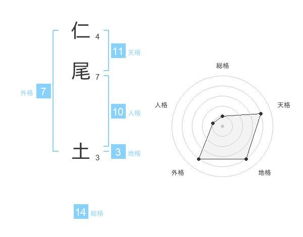 仁尾 土さんを姓名の画数から五運を鑑定