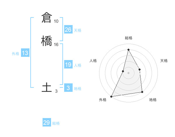 倉橋 土さんの総格は29画の4点!