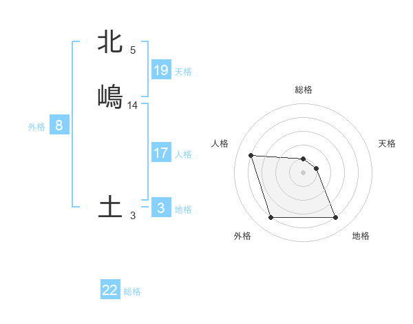 北嶋 土さんを姓名の画数から五運を鑑定