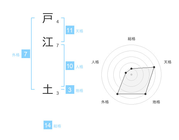 戸江 土さんの天格は11画の4点!