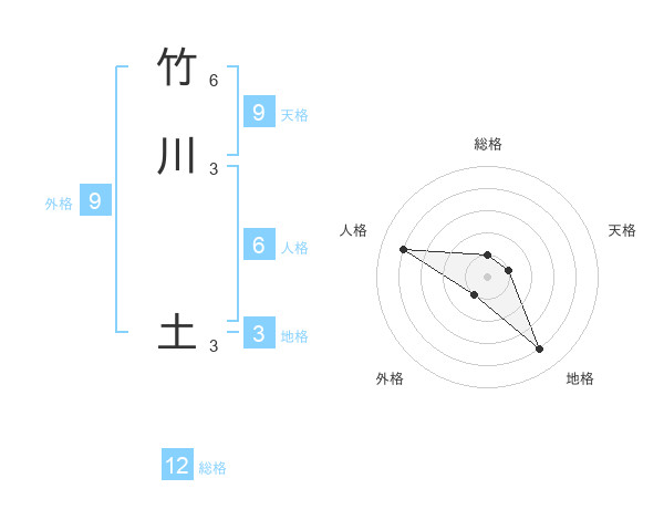 竹川 土さんの総格は12画の1点!