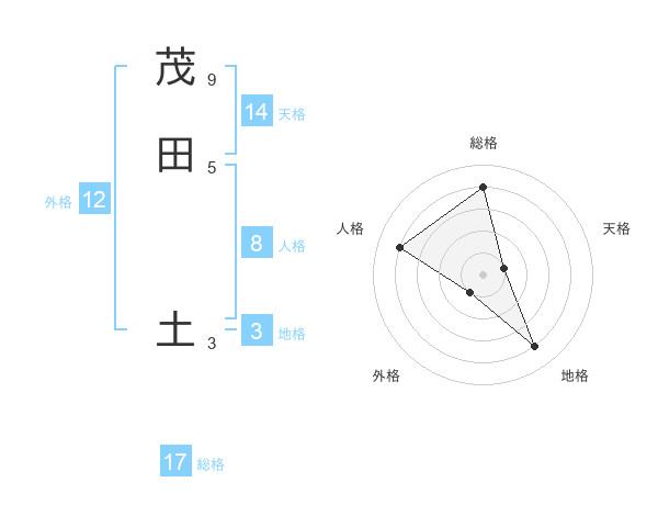 茂田 土さんの総格は17画の4点!