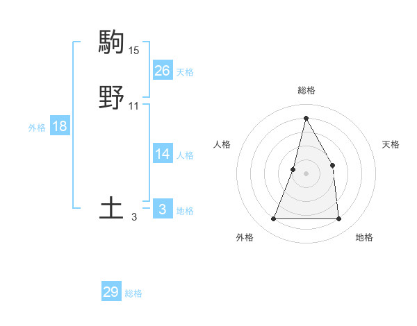 駒野 土さんの総格は29画の4点!