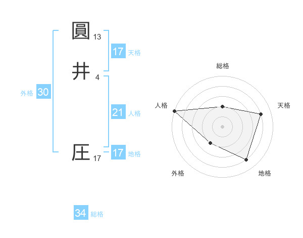 圓井 圧さんの天格は17画の4点!