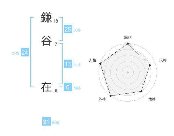 鎌谷 在さんの総格は31画の5点!