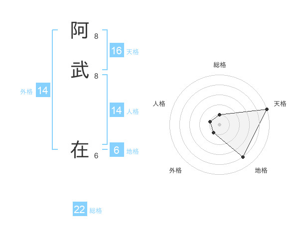 阿武 在さんの総格は22画の1点!